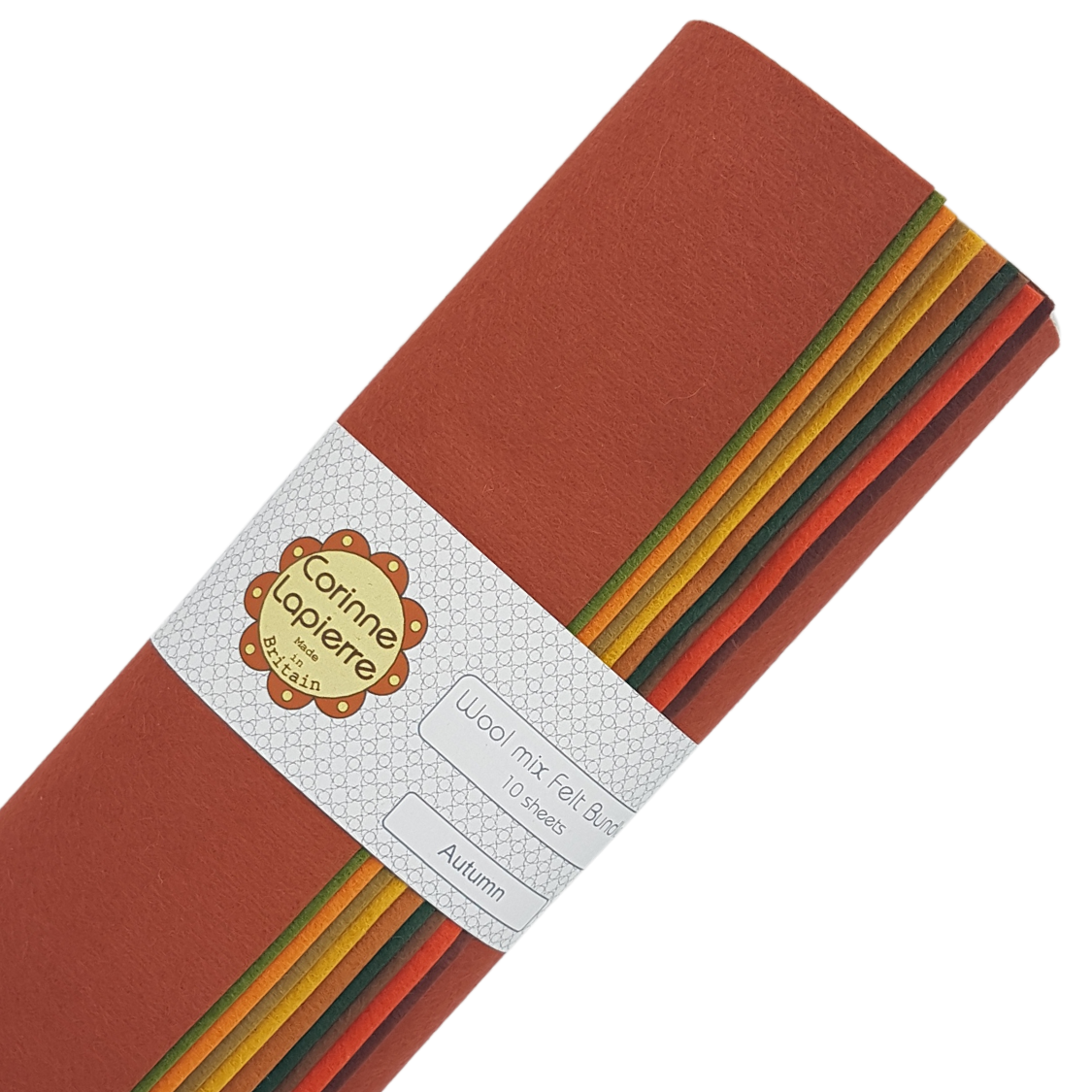 Choose from our mouth-watering range of felt bundles of 10 sheets. We only use the best, softest, easiest-to-use wool-mix felt (30% wool /70% viscose) in distinctive shades that are often hard to find elsewhere and bring projects to life like no other. Each sheet is 22.5cm / 9" square.